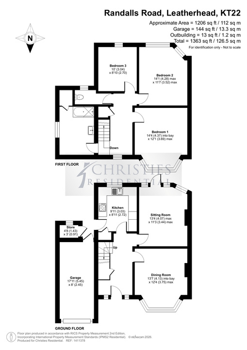 Upstairs, there are three well-proportioned bedrooms. The principal bedroom enjoys a bay window and generous floor space, while the second bedroom is a comfortable double overlooking the rear garden. The third is a good-sized bedroom, ideal as a child’s room, nursery or home office. A family bathroom and separate WC serve the first floor.